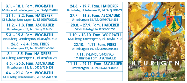 Andere Heurigenbetriebe siehe Heurigenkalender, diese sollte es bei den Tourismusbetrieben teilweise "offline" geben. Sonst einfach